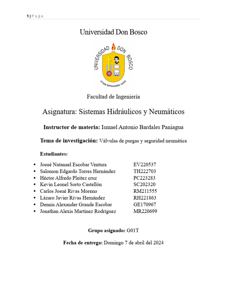 Tema de investigación: Válvulas de purgas y seguridad neumática