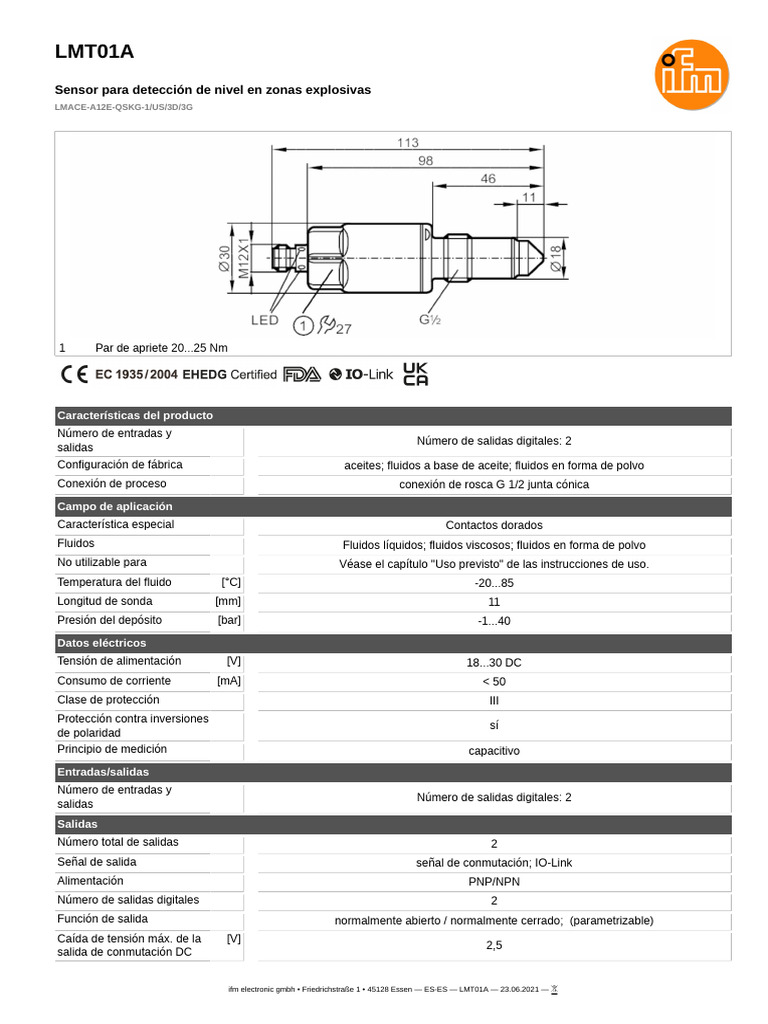 ifm electronic gmbh • Friedrichstraße 1 • 45128 Essen — ES-ES — LMT01A — 23.06.2021 —