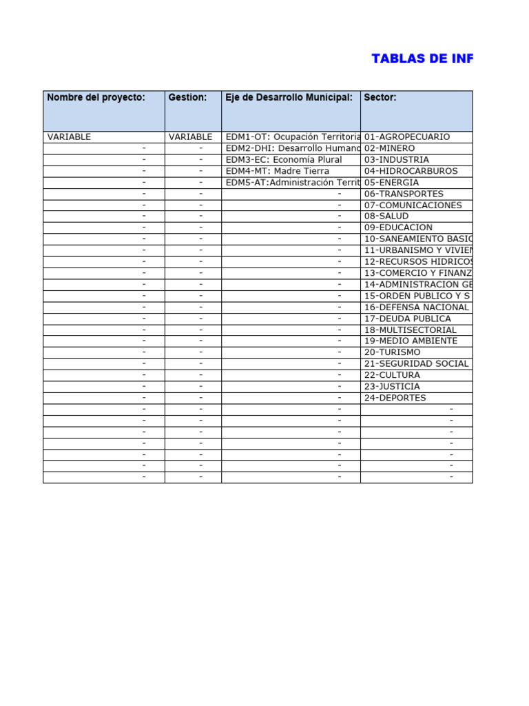 Nombre del proyecto: Gestion: Eje de Desarrollo Municipal: Sector: