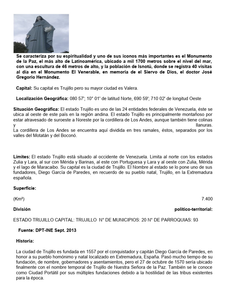 Capital: Su capital es Trujillo pero su mayor ciudad es Valera.