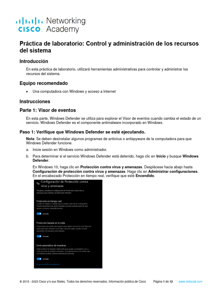 © 2015 - 2023 Cisco y/o sus filiales. Todos los derechos reservados. Información pública de Cisco Página 1 de 12 www.netacad.com