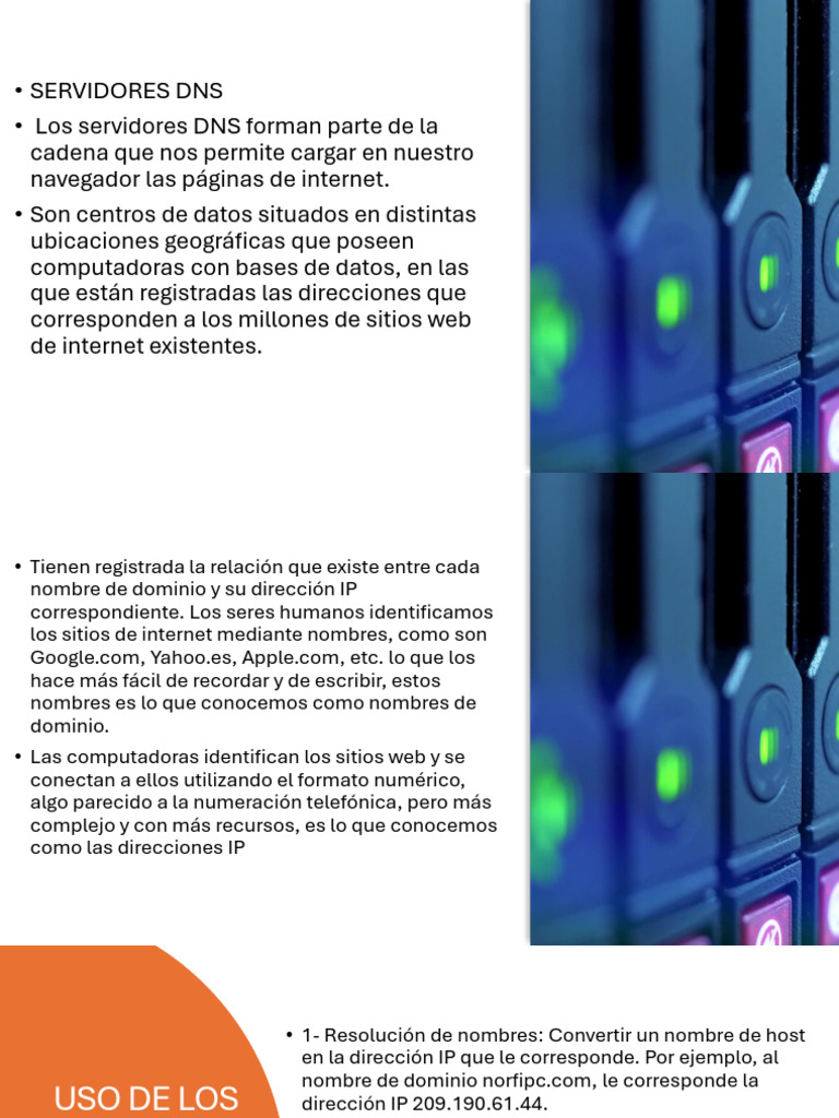 • Los servidores DNS forman parte de la