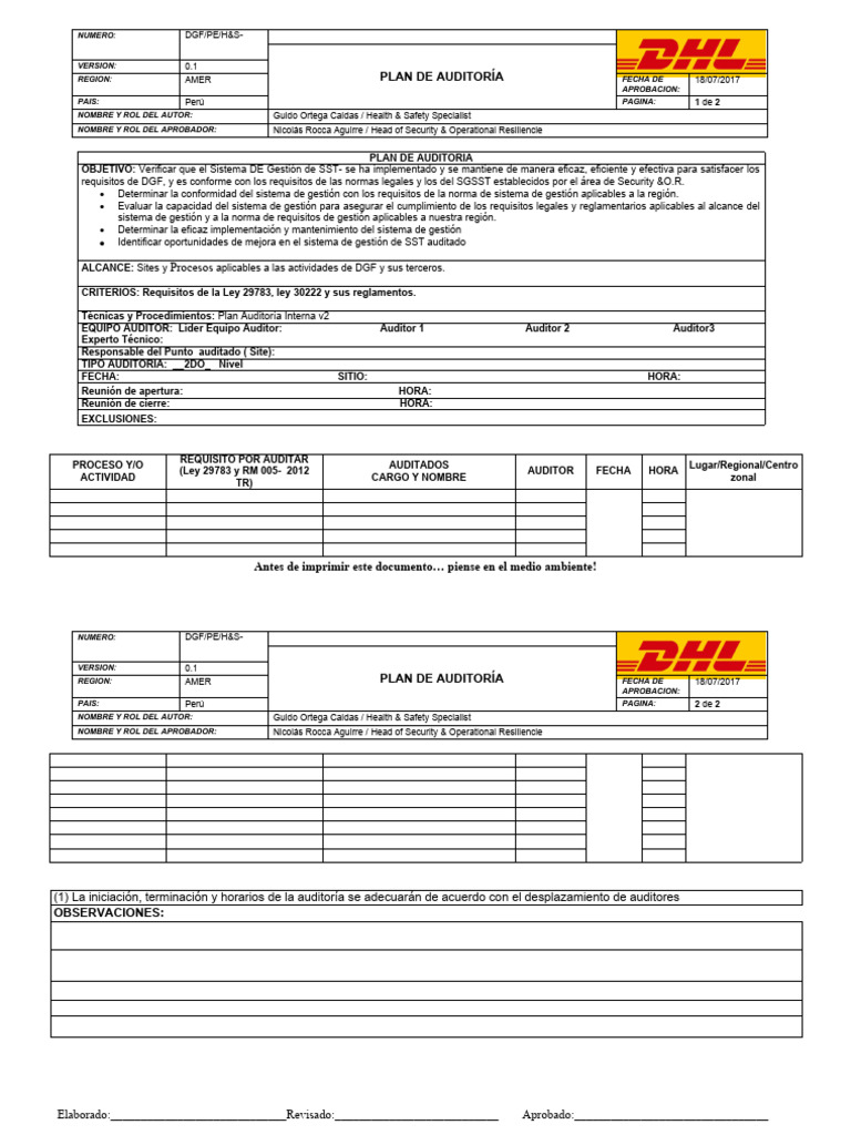 REGION: AMER PLAN DE AUDITORÍA FECHA DE 18/07/2017
