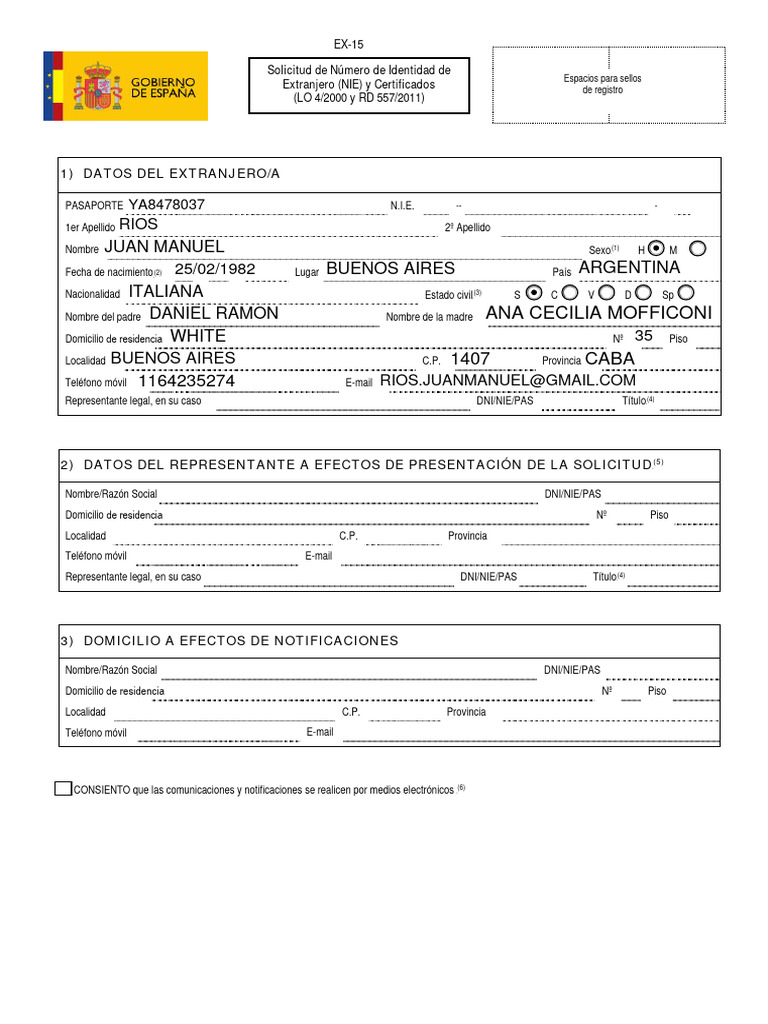 Nombre del padre DANIEL RAMON Nombre de la madre ANA CECILIA MOFFICONI