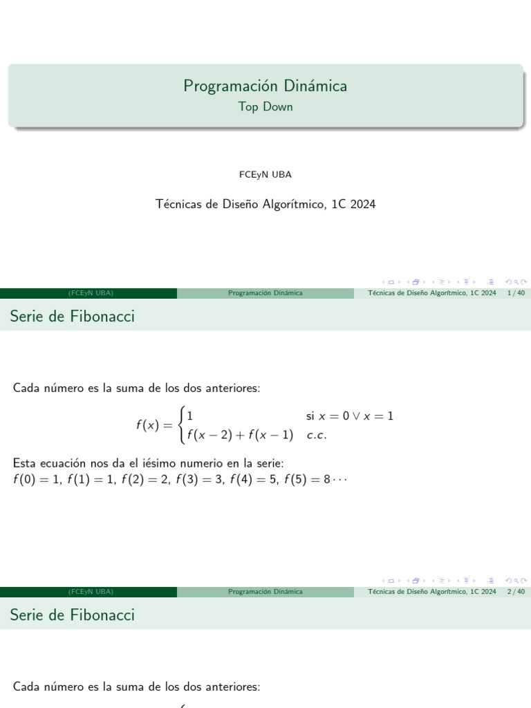 (FCEyN UBA) Programación Dinámica Técnicas de Diseño Algorı́tmico, 1C 2024 3 / 40