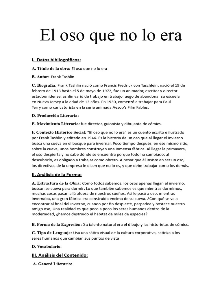 A. Título de la obra: El oso que no lo era