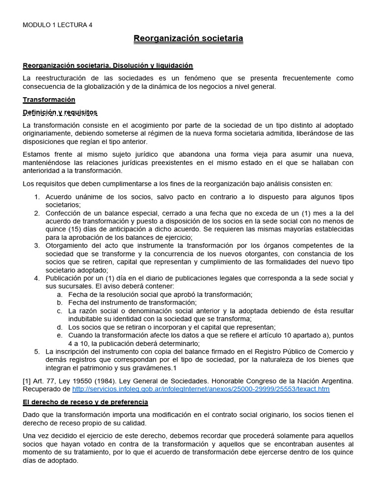 Reorganización societaria. Disolución y liquidación