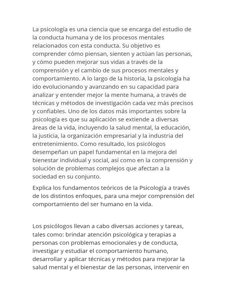 comportamiento. A lo largo de la historia, la psicología ha