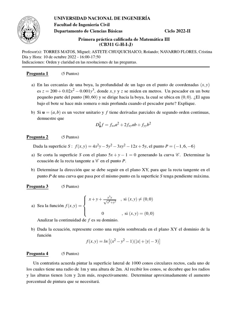 Primera práctica calificada de Matemática III