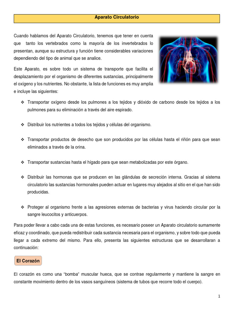 Cuando hablamos del Aparato Circulatorio, tenemos que tener en cuenta