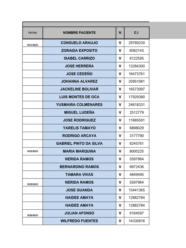 FECHA NOMBRE PACIENTE N C.