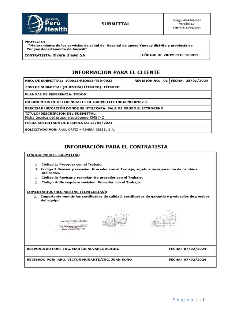 NRO. DE SUBMITTAL: 100013-RID025-TSB-0032 REVISIÓN NO. 01 FECHA: 25/01/2024