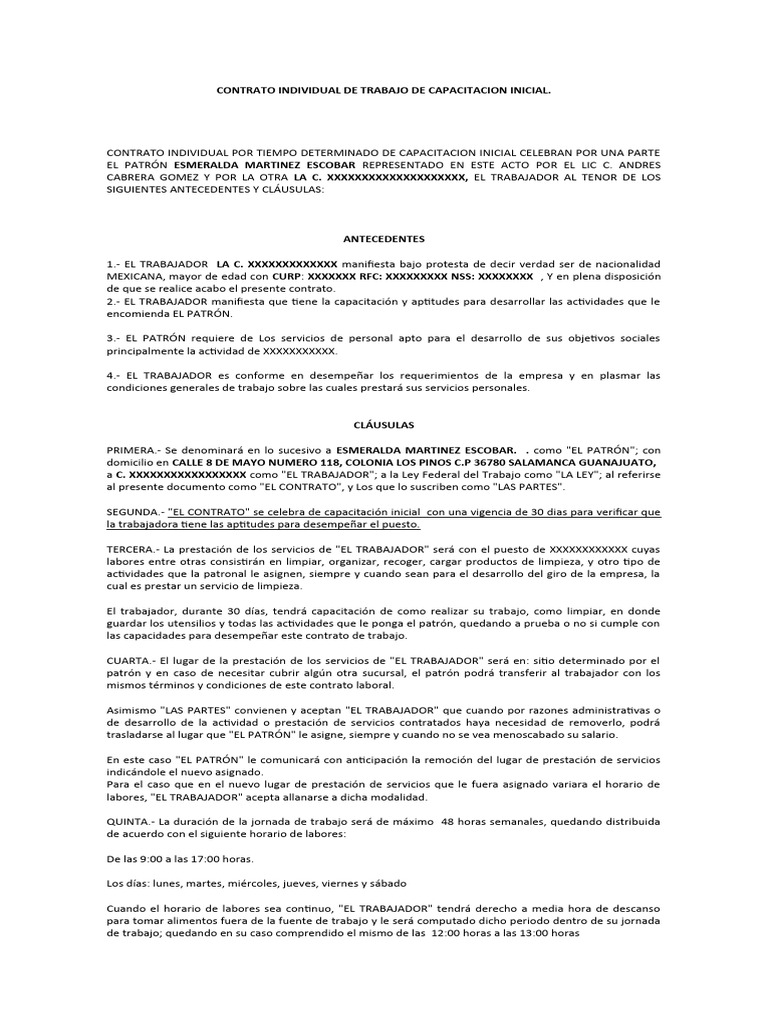 CONTRATO INDIVIDUAL DE TRABAJO DE CAPACITACION INICIAL.