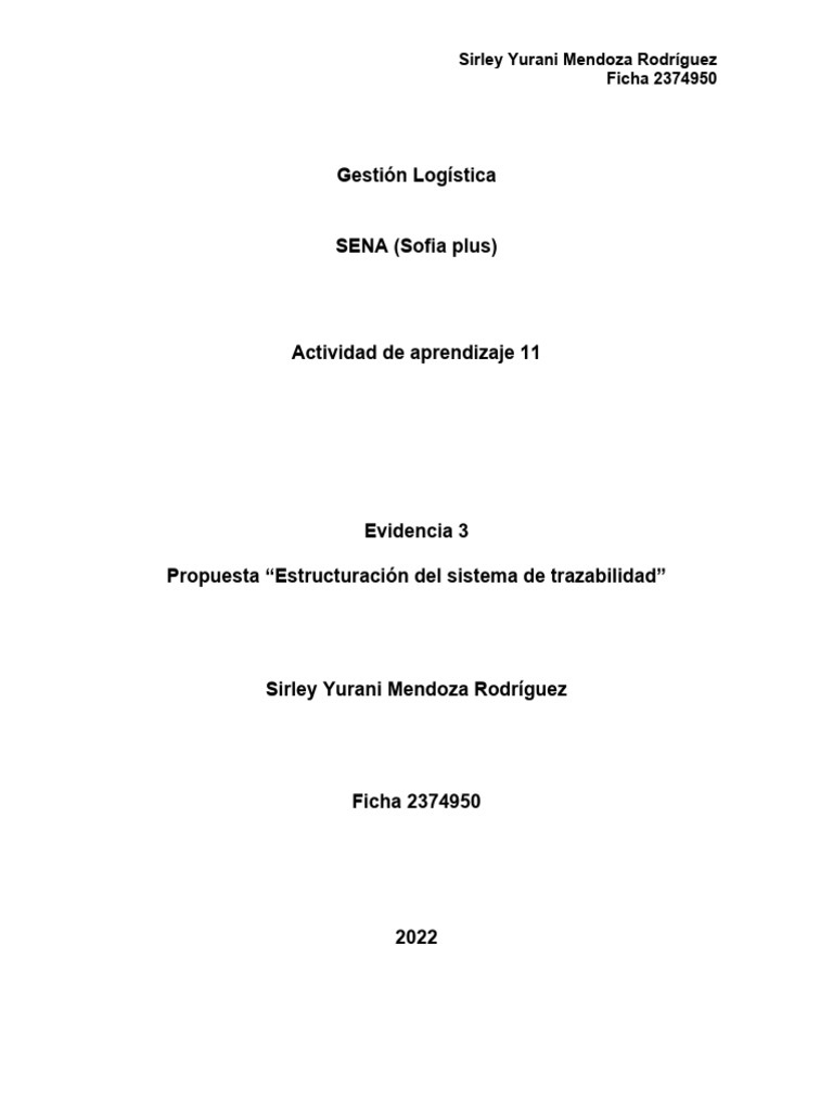 Propuesta “Estructuración del sistema de trazabilidad”