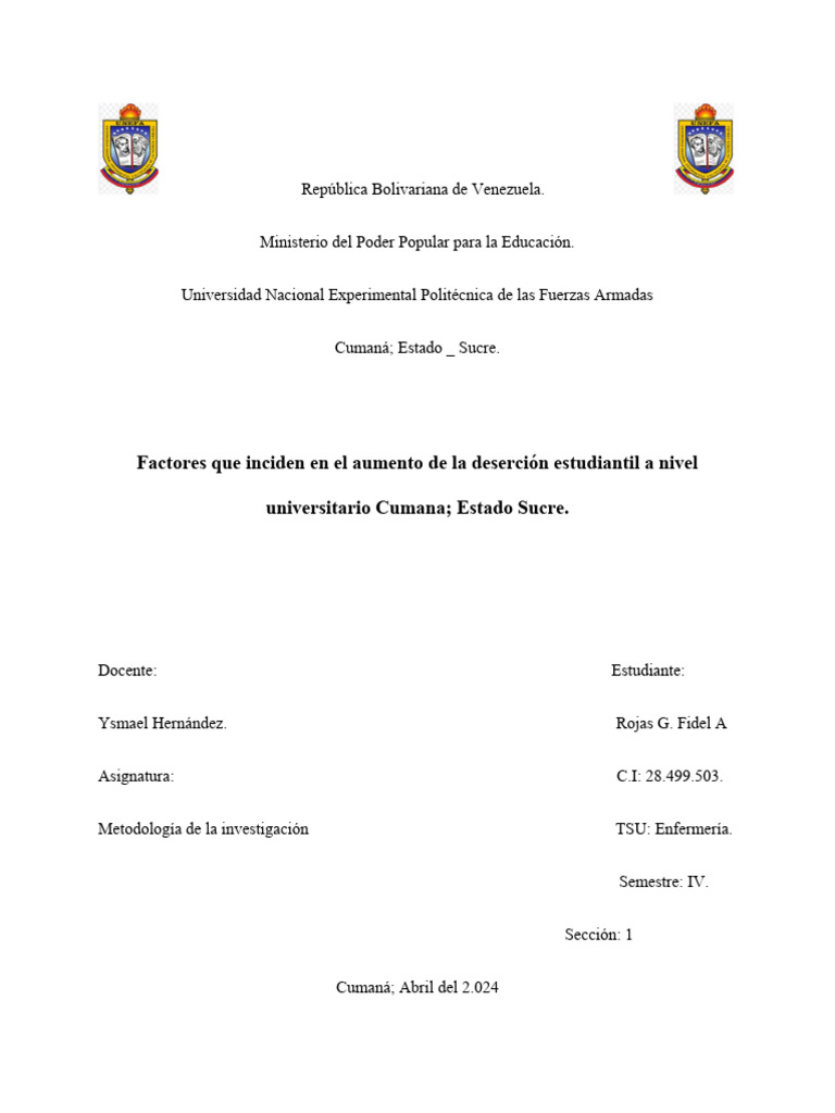 deserción estudiantil en Venezuela ,los cuales pueden llegar a causar graves consecuencias no