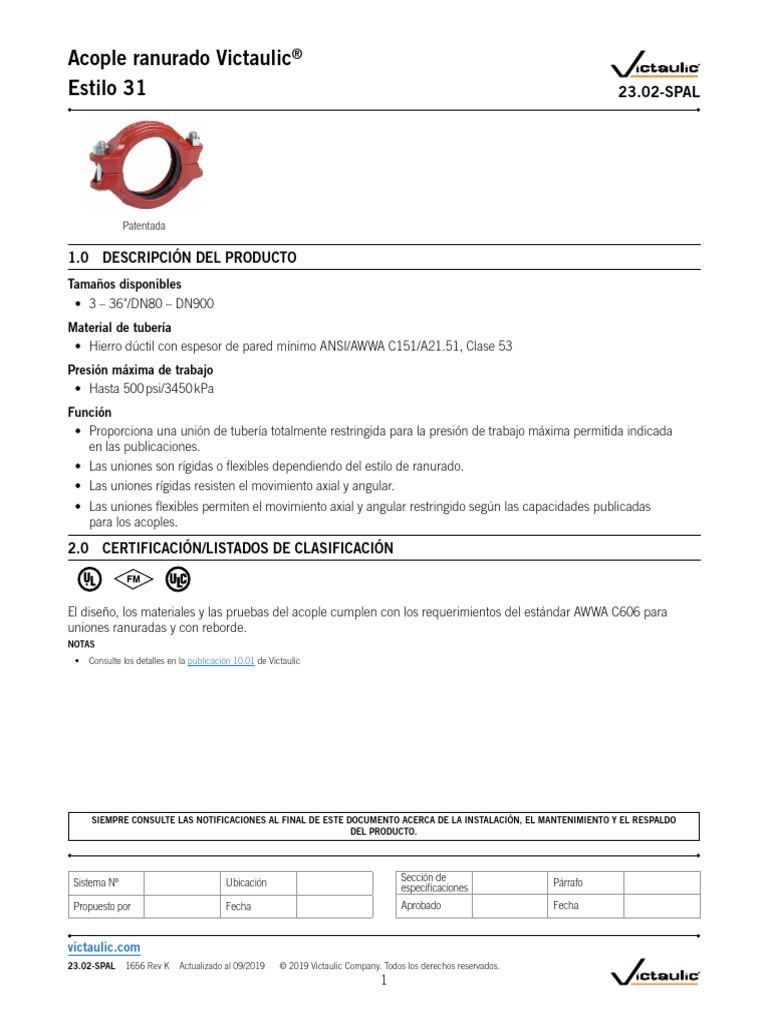 23.02-SPAL 1656 Rev K Actualizado al 09/2019 © 2019 Victaulic Company. Todos los derechos reservados.
