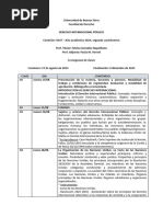 SEPTIEMBRE 1ra. SEMANA: LUNES SEPTIEMBRE MARTES MIERCOLES JUEVES VIERNES 2da. SEMANA: LUNES SEPTIEMBRE MARTES MIERCOLES JUEVES VIERNES 12 13 14 15 16 Unidad: Subtema: Unidad: Subtema: Unidad: Subtema: Unidad: Subtema: Unidad: Subtema: 5 6 7 8 9 Unidad: Subtema: Unidad: Subtema: Unidad: Subtema: Unidad: Subtema: Unidad: Subtema: INICIO DE CLASES GENERALIDADES 1.1 Concepto GENERALIDADES 1.2 Sujetos del derecho internacional GENERALIDADES 1.2.1 Los Estados GENERALIDADES 1.2.2 Santa Sede GENERALIDADES 1.2.3 colectividades bajo el rgimen de internacionalizacin GENERALIDADES 1.2.3 colectividades bajo el rgimen de internacionalizacin GENERALIDADES 1.2.4 Comisiones internacionales GENERALIDADES 1.2.5 comunidades beligerantes GENERALIDADES 1.2.5 comunidades beligerantes SUSPENSIN DE CLASES Aplicacin de exmenes extraordinarios y de regularizacin 19-23 de Septiembre 19 20 21 22 23 Unidad: Subtema: Unidad: Subtema: Unidad: Subtema: Unidad: Subtema: Unidad: Subtema: GENERALIDADES 1.3 Reglas legales aplicadas a individuos en particular GENERALIDADES 1.3.1 Prohibicin de la piratera GENERALIDADES 1.3.2 Prohibicin de trata de blancas y negros GENERALIDADES 1.3.3 Prohibicin de esclavitud GENERALIDADES 1.3.4 Prohibicin de trfico de drogas 1o Evaluacin Parcial sin suspensin de labores 26-30 Septiembre 26 27 28 29 30 Unidad: Subtema: Unidad: Subtema: Unidad: Subtema: Unidad: Subtema: Unidad: Subtema: GENERALIDADES 1.3.5 Prohibicin de publicaciones obscenas GENERALIDADES 1.3.6 Derechos humanos GENERALIDADES 1.3.6 Derechos humanos EXAMEN EL ESTADO 2.1 Concepto OCTUBRE 1ra. SEMANA: LUNES OCTUBRE MARTES MIERCOLES JUEVES VIERNES 3 4 5 6 7 Unidad: Subtema: Unidad: Subtema: Unidad: Subtema: Unidad: Subtema: Unidad: Subtema: EL ESTADO 2.1 Concepto EL ESTADO 2.2 Elementos: poblacin, territorio, EL ESTADO 2.2 Elementos: poblacin, territorio, EL ESTADO 2.3 Derechos y deberes constitucionales e EL ESTADO 2.3 Derechos y deberes constitucionales e