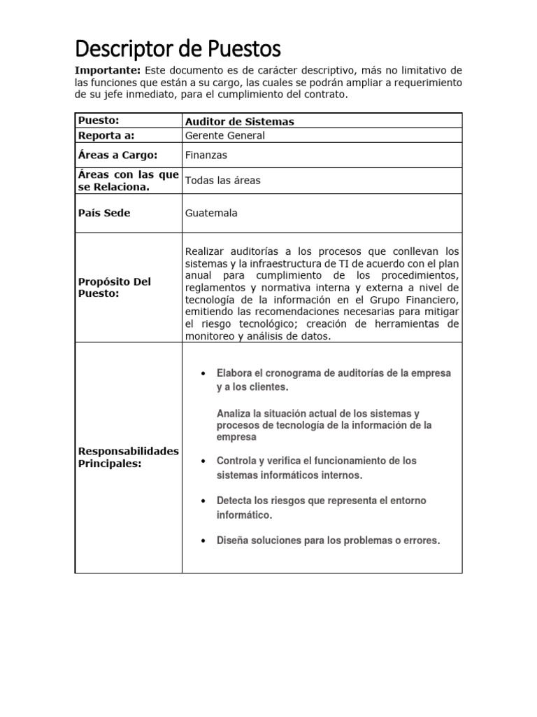 Descriptor de Puestos