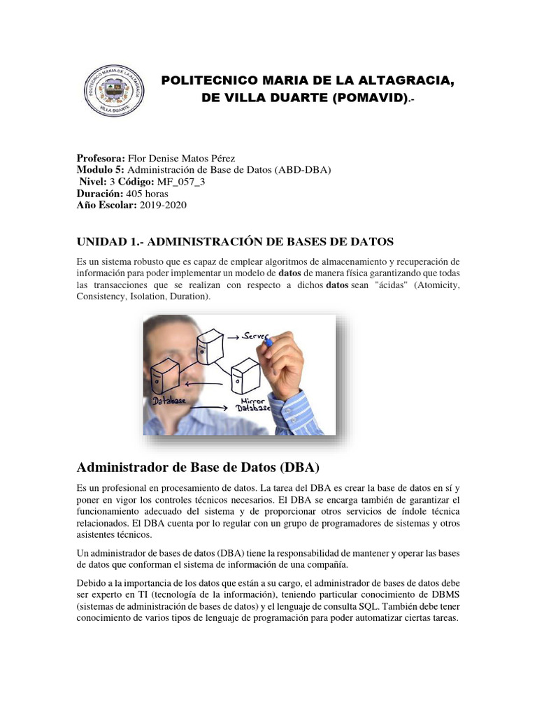 UNIDAD 1.- ADMINISTRACIÓN DE BASES DE DATOS
