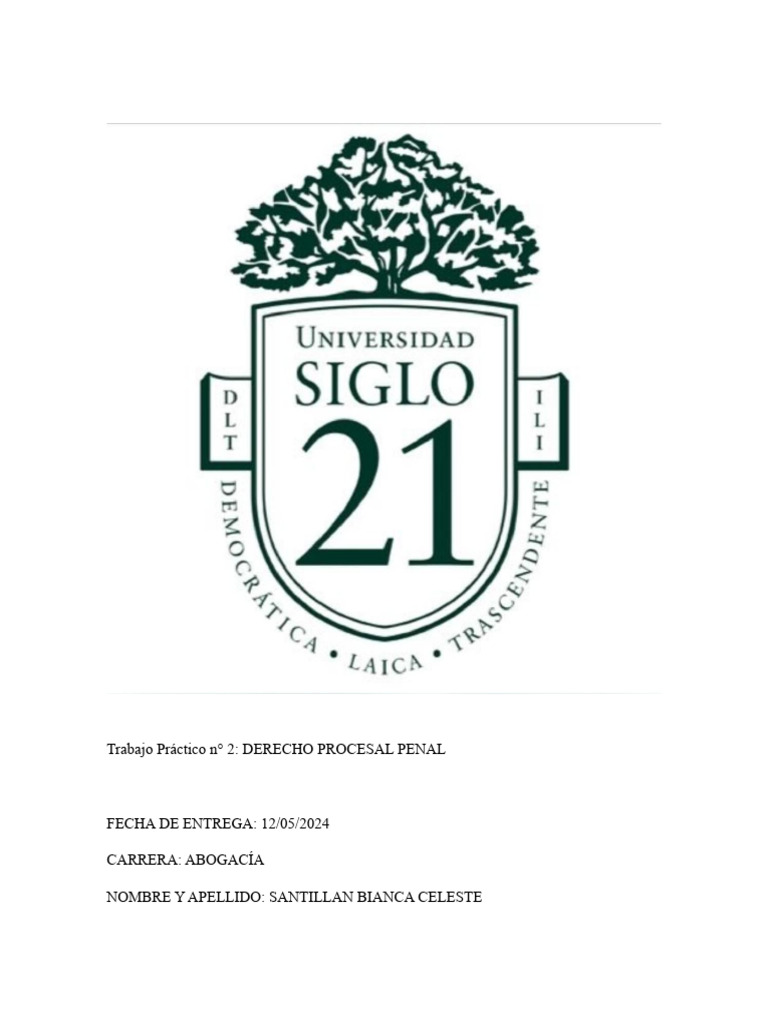 Trabajo Práctico n° 2: DERECHO PROCESAL PENAL