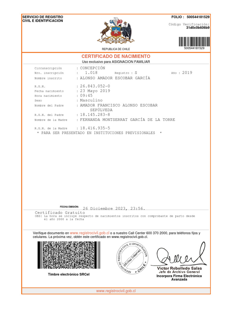 Nombre del Padre : AMADOR FRANCISCO ALONSO ESCOBAR