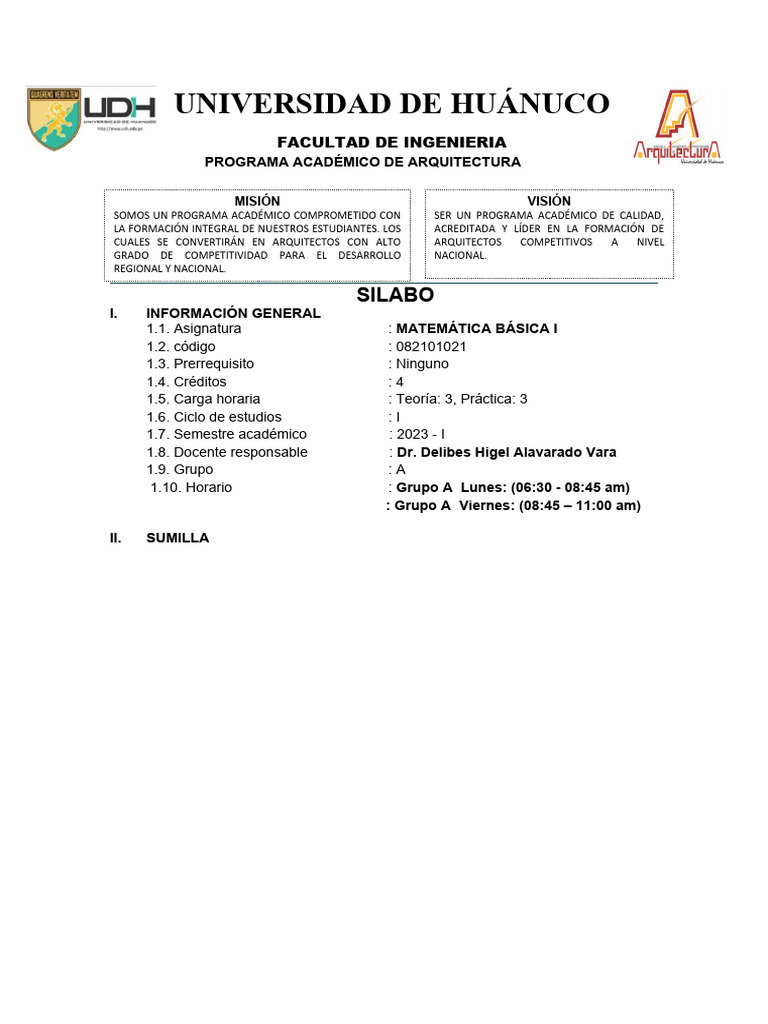 1.1. Asignatura : MATEMÁTICA BÁSICA I