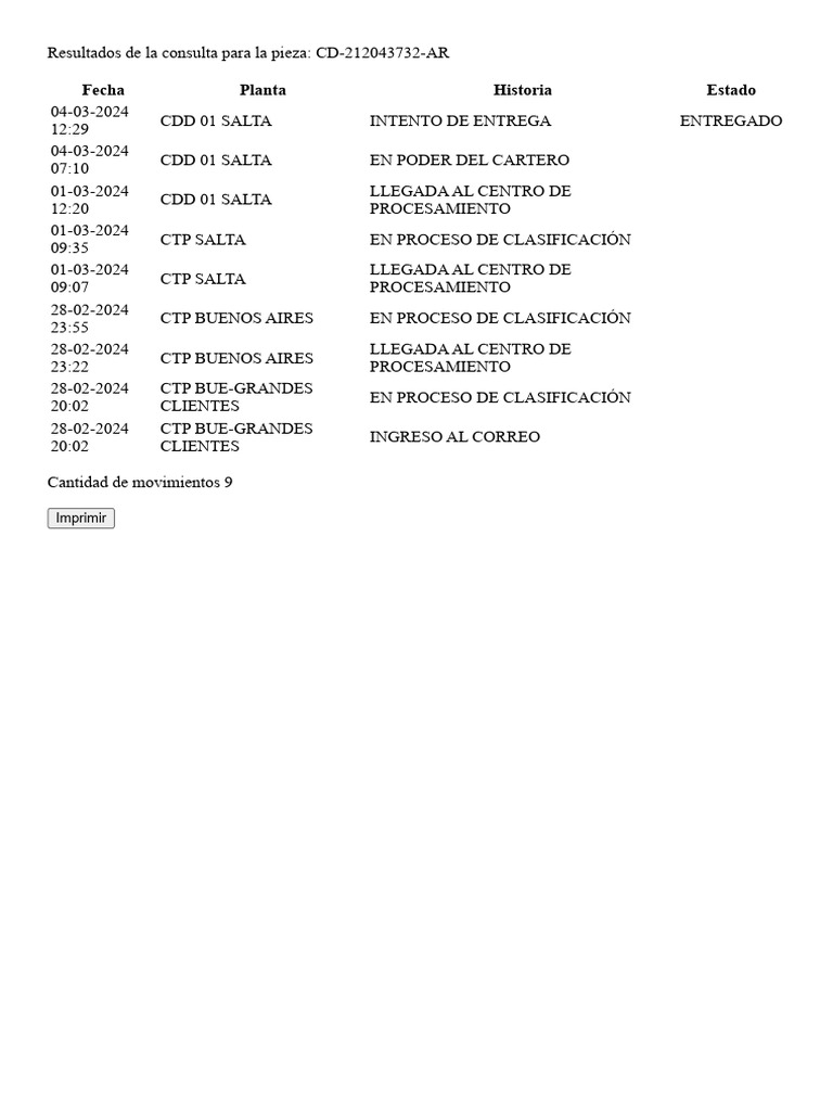 CDD 01 SALTA INTENTO DE ENTREGA ENTREGADO