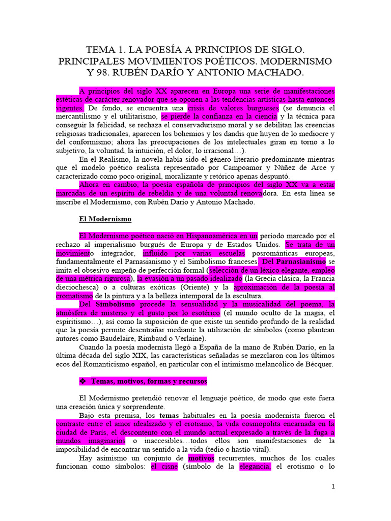 TEMA 1. LA POESÍA A PRINCIPIOS DE SIGLO.