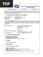 USO DEL PRODUCTO Agente limpiador y desinfectante.