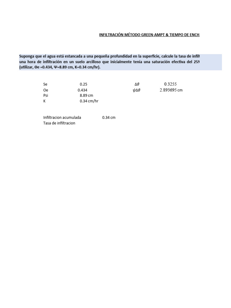 (utilizar, Ɵe =0.434, Ψ=8.89 cm, K=0.34 cm/hr).
