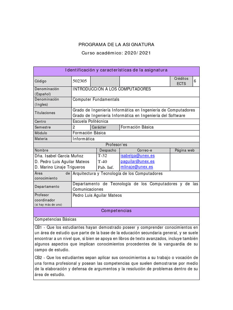 Denominación INTRODUCCIÓN A LOS COMPUTADORES