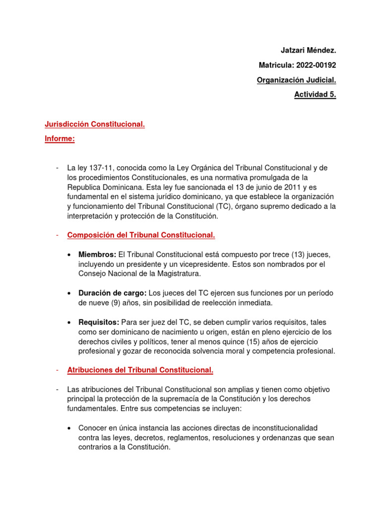 - La ley 137-11, conocida como la Ley Orgánica del Tribunal Constitucional y de