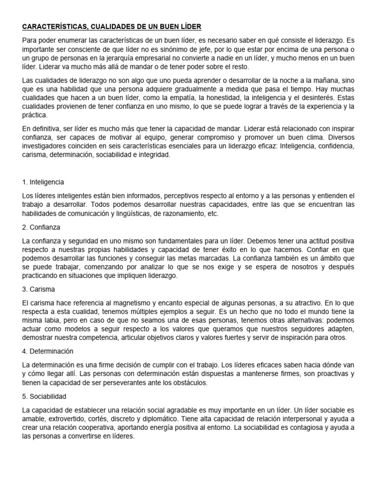 CARACTERÍSTICAS, CUALIDADES DE UN BUEN LÍDER