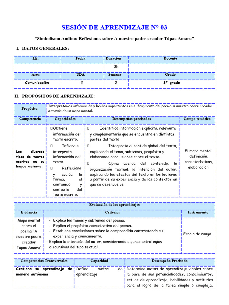 2. PROPÓSITOS DE APRENDIZAJE 3. 4. CRITERIOS DE EVALUACIÓN