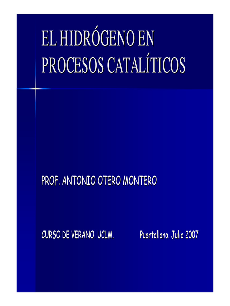 EL HIDRÓGENO EN LOS PROCESOS CATALÍTICOS INDUSTRIALES
