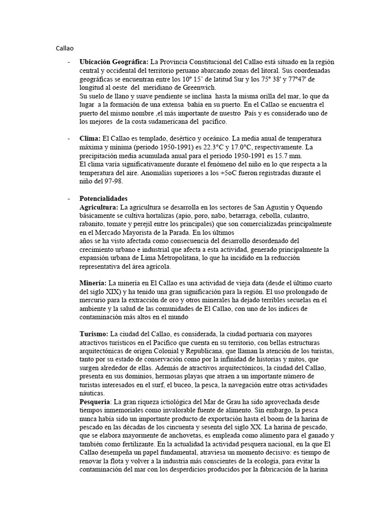 - Ubicación Geográfica: La Provincia Constitucional del Callao está situado en la región