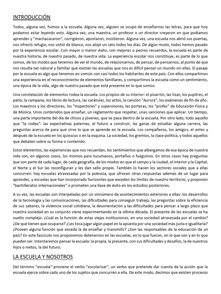 país? En este fascículo nos proponemos detenernos en las escuelas, en lo que fueron, en lo que son y en lo que