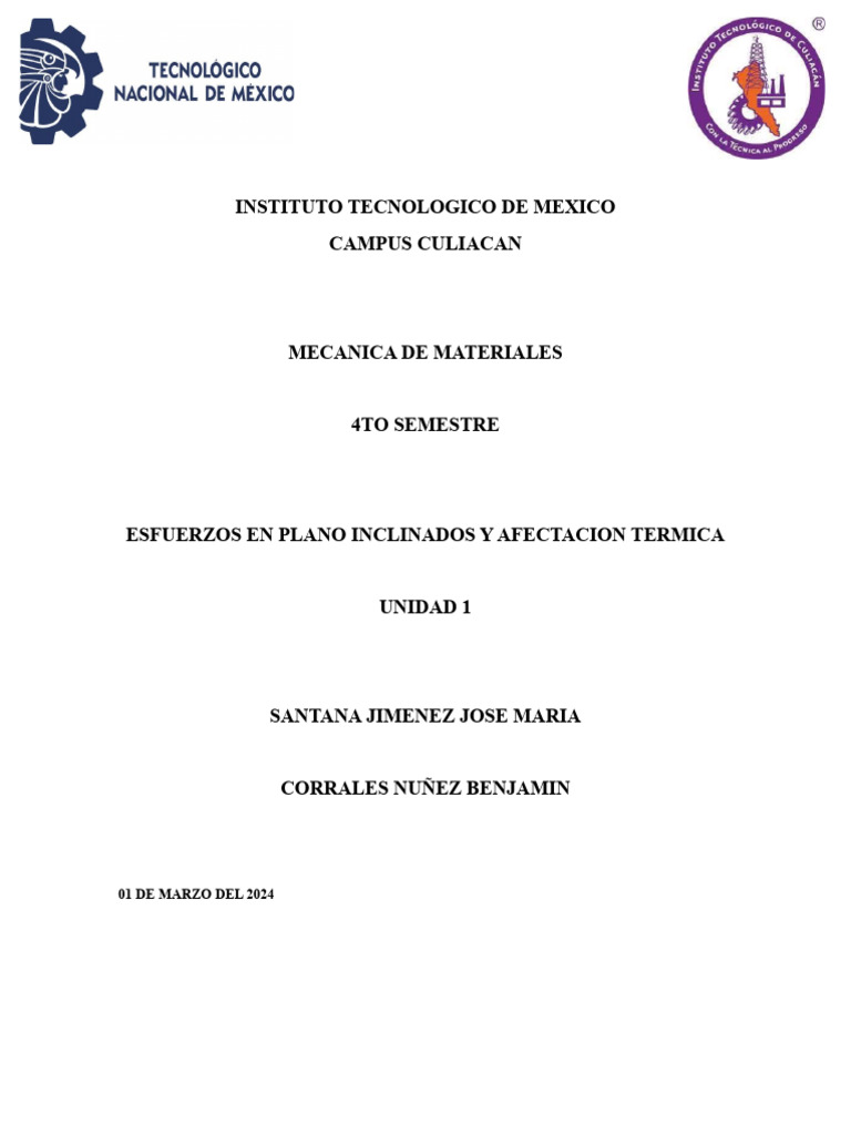 ESFUERZOS EN PLANO INCLINADOS Y AFECTACION TERMICA