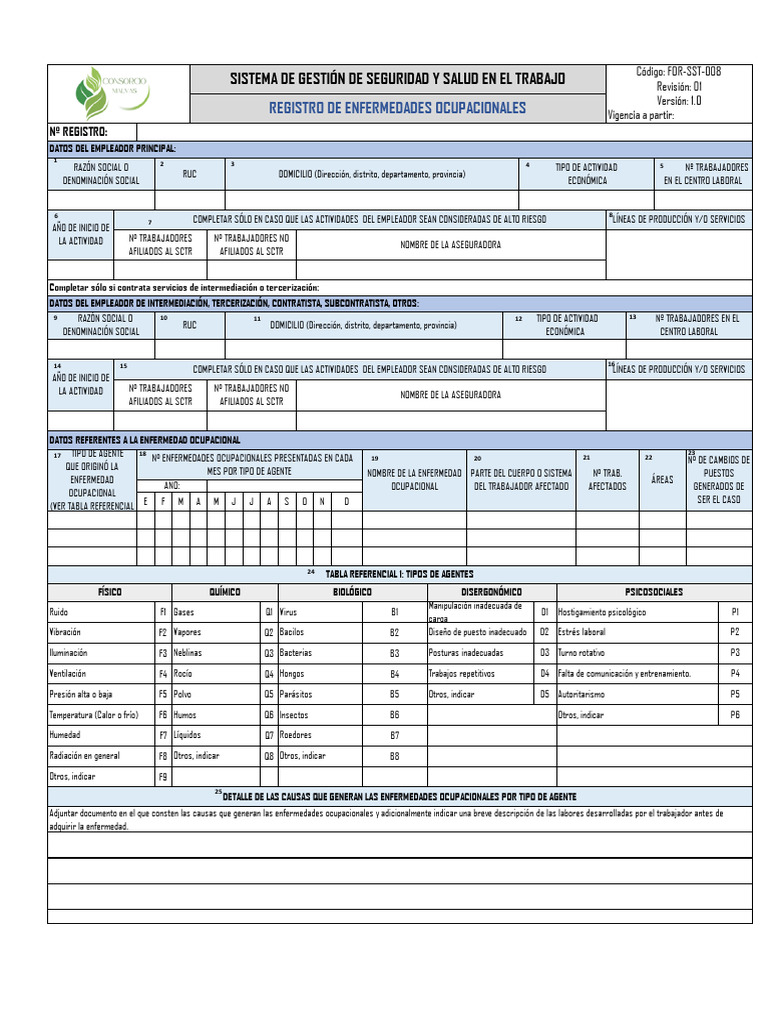 REGISTRO DE ENFERMEDADES OCUPACIONALES Vigencia a partir:
