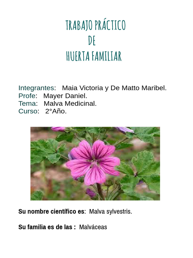 Ingredientes: 1 cucharita de té de flores u hojas secas de Malva ;
