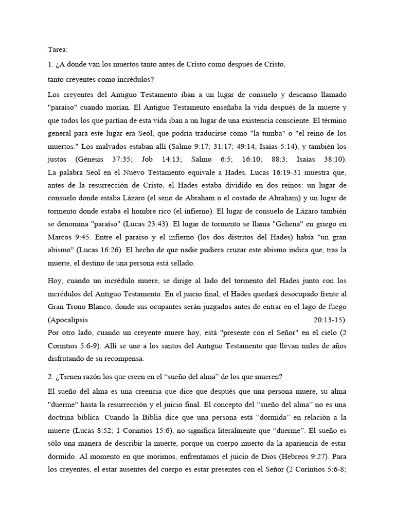 1. ¿A dónde van los muertos tanto antes de Cristo como después de Cristo,