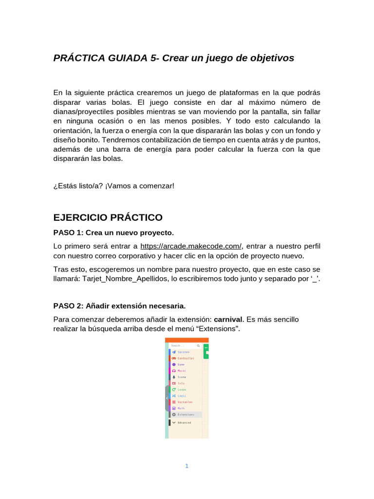 PRÁCTICA GUIADA 5- Crear un juego de objetivos
