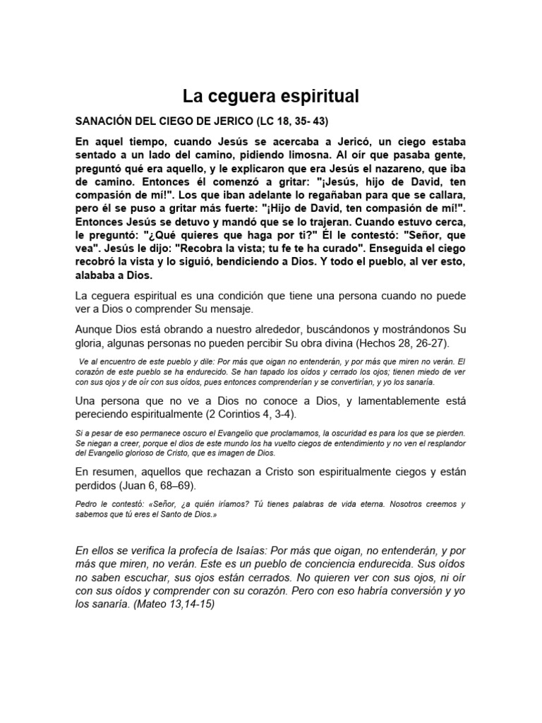 La ceguera espiritual es una condición real en todo ser humano desde su