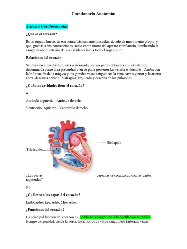 Cuestionario Anatomía: