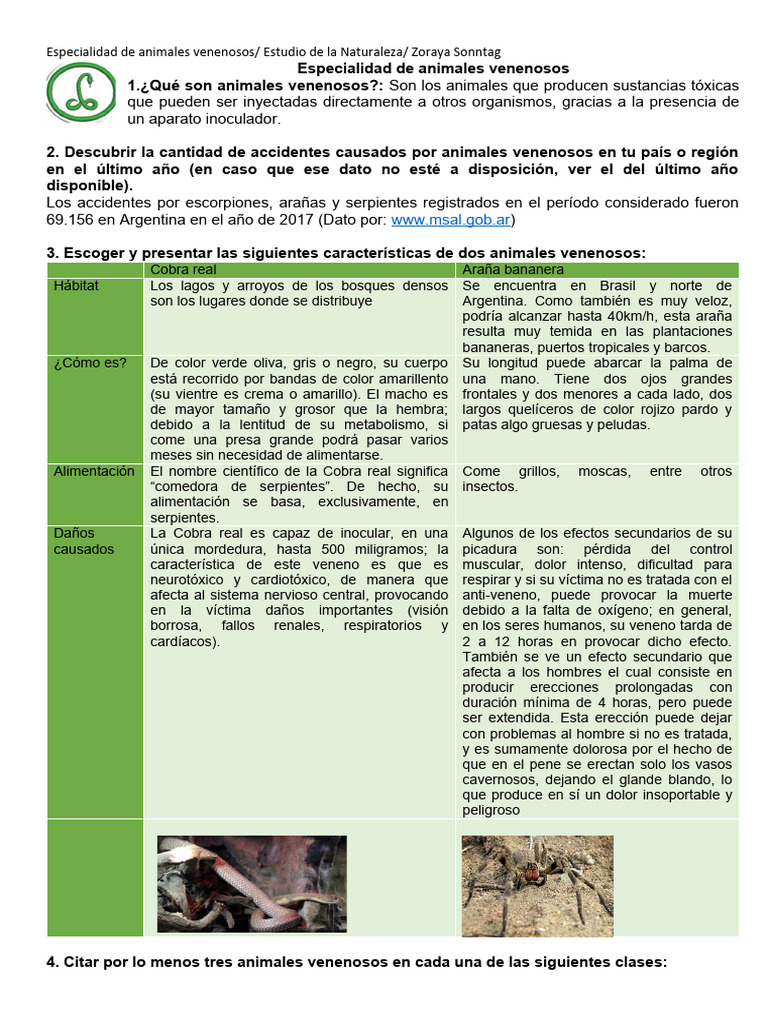 Especialidad de animales venenosos/ Estudio de la Naturaleza/ Zoraya Sonntag