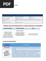 en la que se evidencien 2 clases de pensamiento y 2 operaciones mentales, justificando las