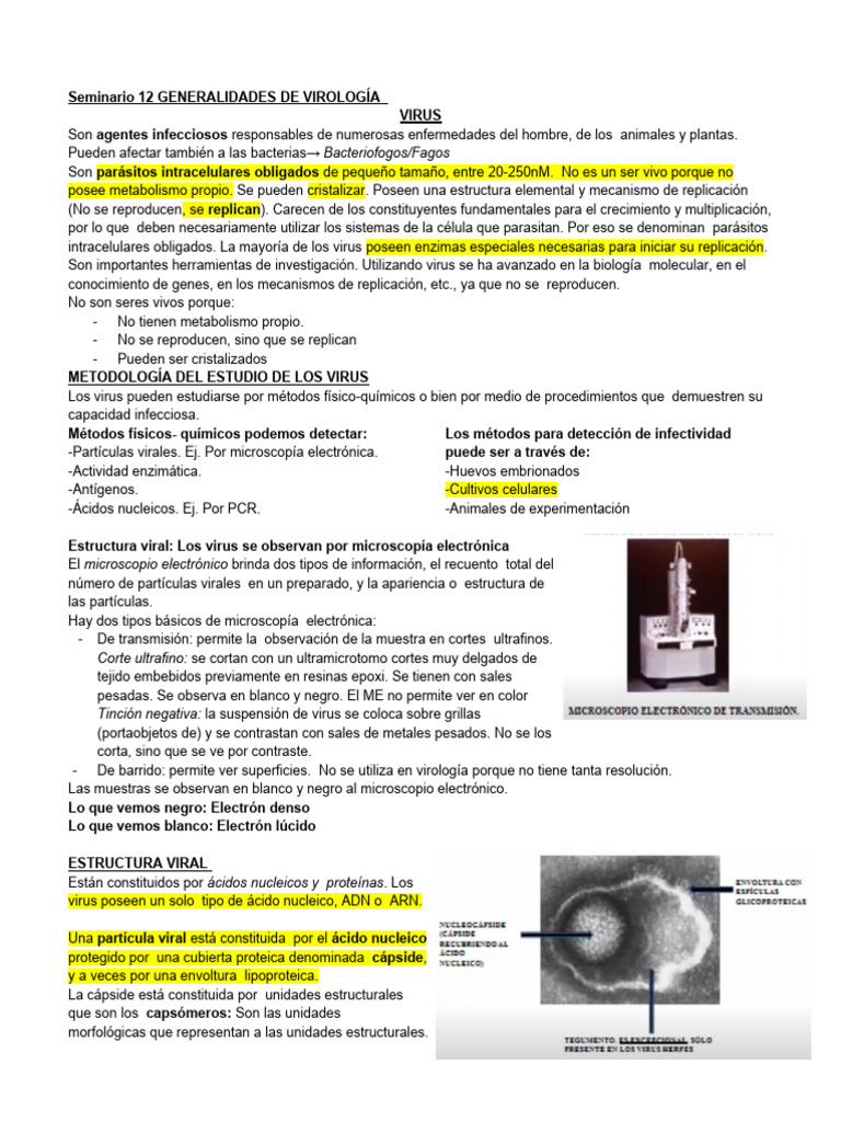 Seminario 12 GENERALIDADES DE VIROLOGÍA