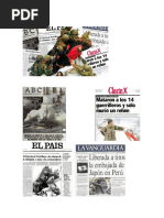 ms inicuo, sus camaradas de la campaa del 41 o han muerto o agonizan en medio de una miseria espantosa, vencidos por el resentimiento y por el hambre. En ese camino van los combatientes de El Cenepa. Un pueblo que se deja arrebatar su dignidad es un pueblo sin futuro. Peruano de corazn herederos de Cceres, Mamanis, Quispes y Yupanquis, hombres de ancestros peruanos: digamos basta ya! a tanta humillacin. Vale ms morir de pie que vivir de rodillas. Por escribir esto no se me podr acusar ni de derrotista ni de traidor a la patria. Porque enarbolamos la verdad. Morir antes que ceder un milmetro ms de nuestro sagrado territorio patrio! O, en ltimo caso, Muerte a quienes se nieguen a hacer respetar la intangibilidad territorial del Per!