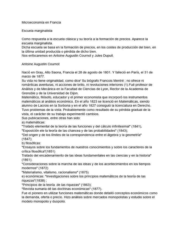 Nos enfocaremos en Antoine Augustin Cournot y Jules Dupuit.