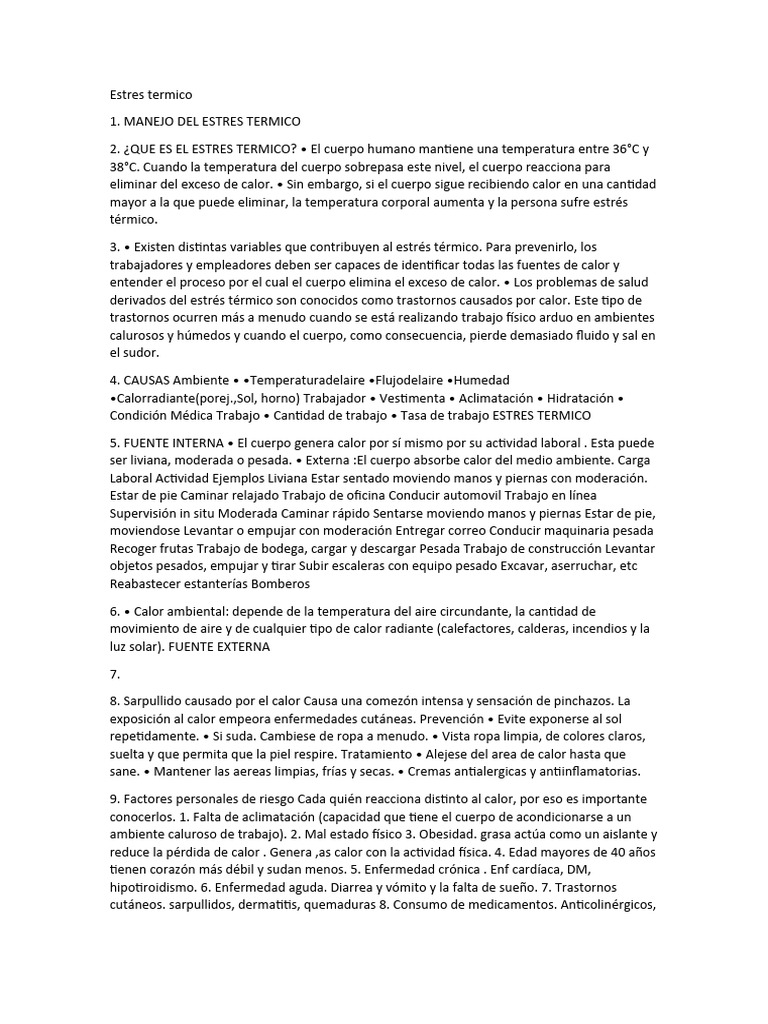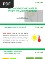 estrés térmico, sus colegas inmediatos y sus supervisores. • El empleador debe implementar